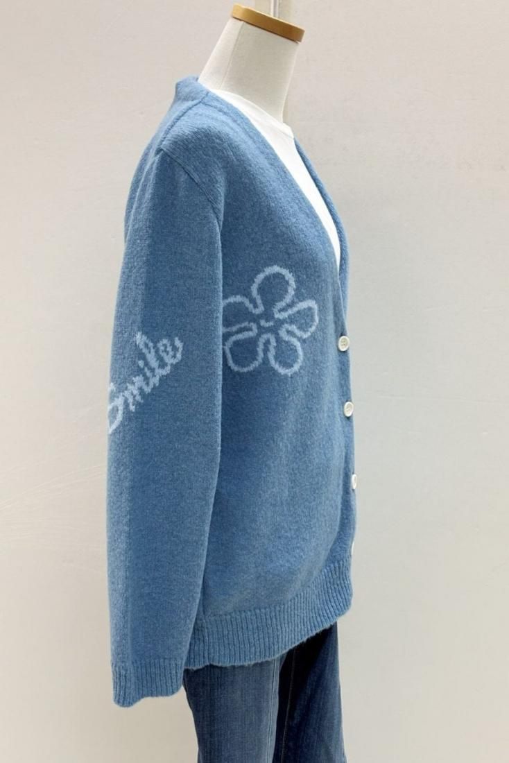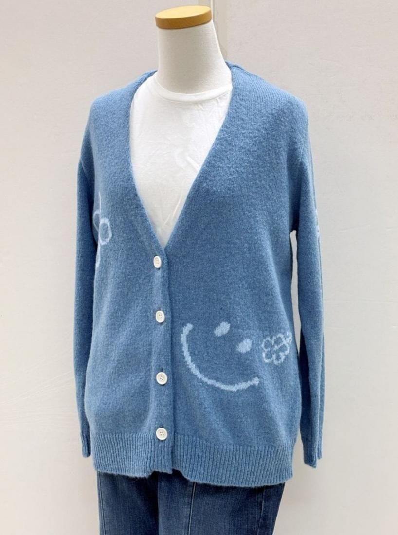 ハッピーなモチーフがあちこちにあしらわれていて、見ているだけで心までほっこり温まるカーディガンです。